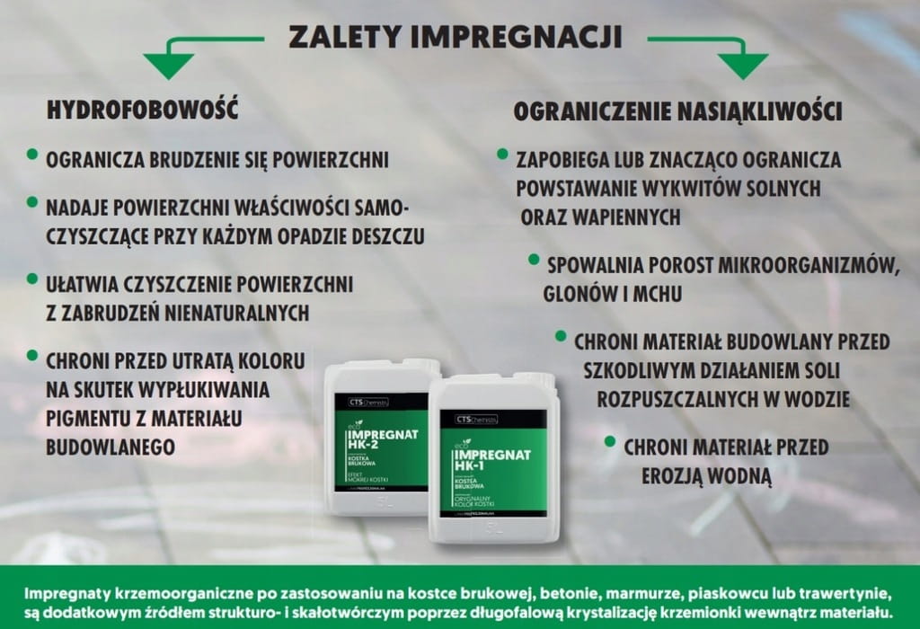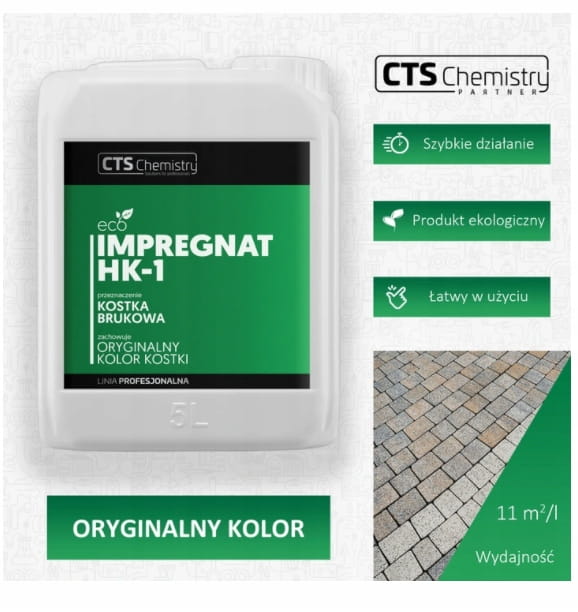 IMPREGNAT DO KOSTKI BRUKOWEJ HK-1 (oryginalny kolor kostki) to wodny, hydrofobizujący preparat, niezmieniający koloru kostki.