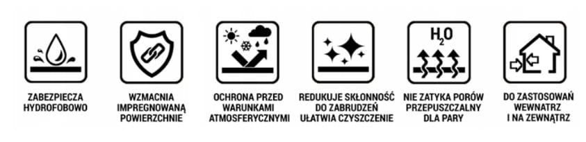 Impregnat nie zmienia wyglądu powierzchni oraz nie tworzy powłoki.