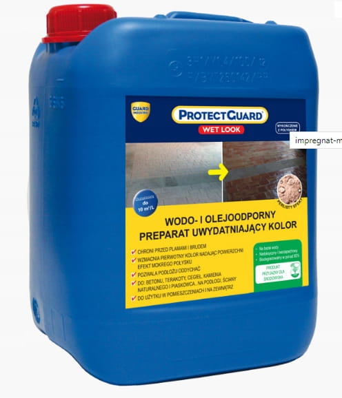 ProtectGuard® WL Pół-Połysk to doskonały impregnat tworzący efekt pół-połysku lub satynowo-mokry (zależy od materiału), przeznaczony do zabezpieczania porowatych materiałów budowlanych przed wodą, olejem i zabrudzeniami. Preparat zabezpiecza przed głównymi przyczynami niszczenia takimi jak zanieczyszczenia atmosferyczne i plamy tłuszczowe i wszelkimi innymi zabrudzeniami.
