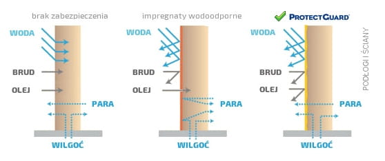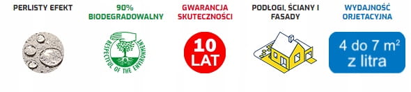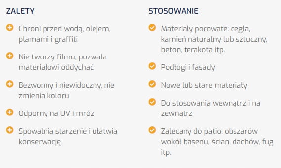 Wodoszczelność, olejoszczelność, ochrona przed plamami i graffiti, do materiałów porowatych.